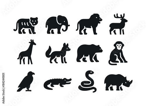 © Настя Шевчук, Obraz premium Wild Animals Icons. Wild Animals. Solid icon set of Wild Animals