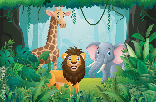© dreamblack46, Fototapeta premium Wild animals in the jungle background