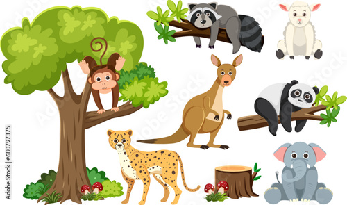 © blueringmedia, Fototapeta premium Wild Animals Isolated and a Tree