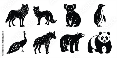 © MdMohiuddin, Obraz premium Wild animals silhouette set. Animals vector illustration