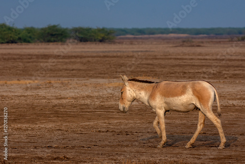© Rima, Fototapeta premium Wild Ass Grazing in Little Rann of Kutch Sanctuary