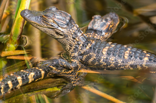 © Patrick, Naklejka premium Wild baby alligators staying warm in the sun in Everglades National Park along the Shark Valley Trail (Florida).