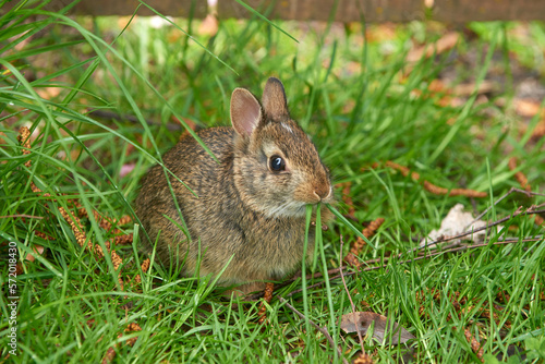© thecolorpixels, Fototapeta premium Wild baby rabbit on the green grass in spring.
