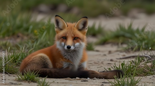© Neelam, Naklejka premium Wild baby red foxes cuddling at the beach June 2020 No.generative.ai
