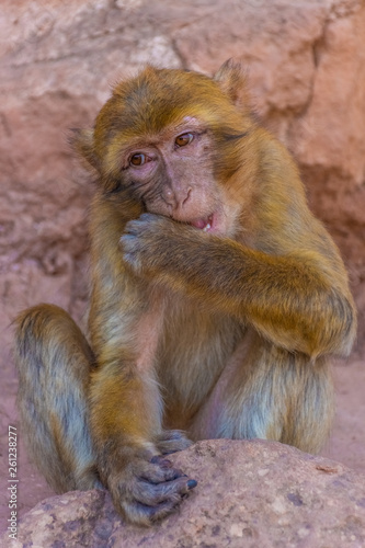 © Stefano Zaccaria, Naklejka premium Wild barbary ape eating in Morocco