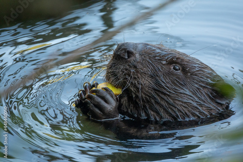 © Julia Laiho, Fototapeta premium Wild beaver eating in the river