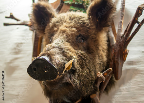 Fototapeta premium Wild boar head sticking out of the wall 1