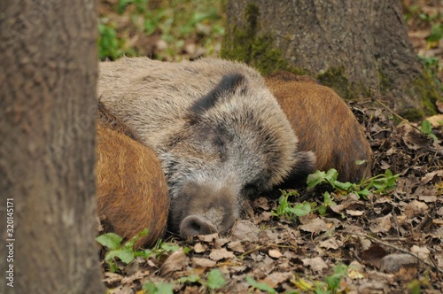 © martynan, Naklejka premium wild boar in forest