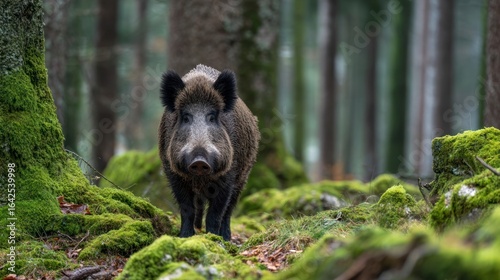 © irma graffity, Obraz premium Wild boar in mossy forest