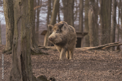 Fototapeta premium Wild boar - Sus scrofa - in the forest and by the in its natural habitat....