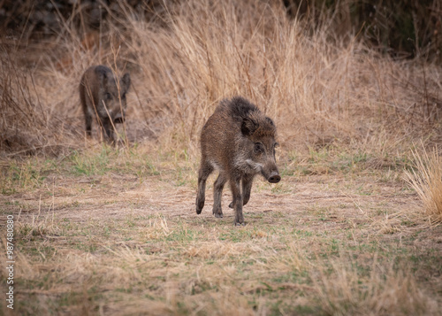 © fsanchex, Fototapeta premium Wild boar walking through the Iberian pasture in summer