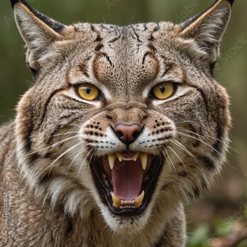 © GMeta, Obraz premium Wild Bobcat in the Shadows Fierce Predator in Closeup