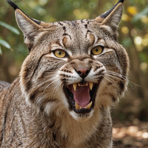 Obraz premium Wild Bobcat in the Shadows Fierce Predator in Closeup
