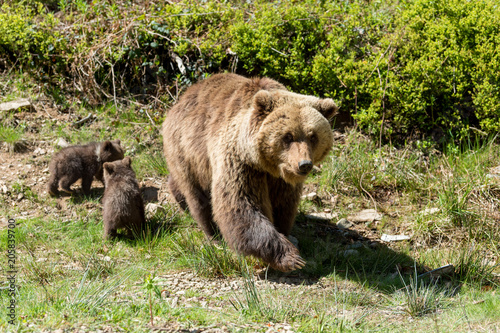© byrdyak, Obraz premium Wild brown bear cub closeup