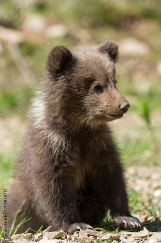 © byrdyak, Obraz premium Wild brown bear cub closeup