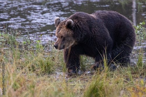 © Ilkka, Fototapeta premium Wild brown bear on the swamp.
