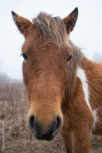 © Martina, Obraz premium Wild Brown White Pony Closeup
