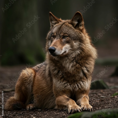 © Mohd, Fototapeta premium Wild Brown Wolf Observing Its Surroundings
