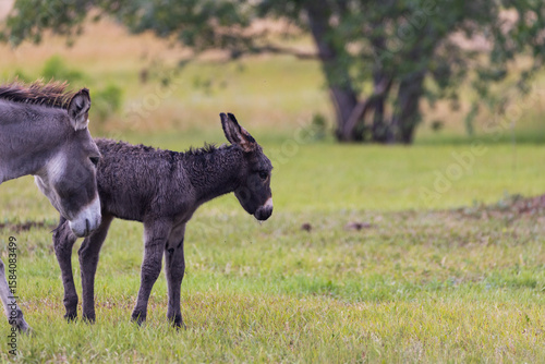 © Martina, Fototapeta premium Wild burro with foal in a meadow