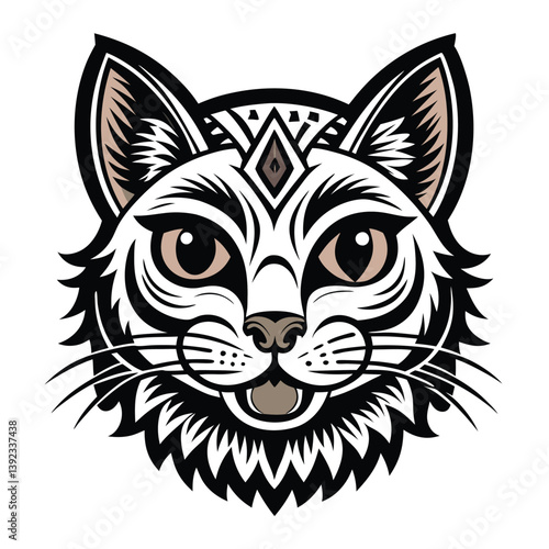 Obraz premium Wild cat head illustration representing strength, agility, and raw instinct. A bold and expressive animal face symbol ideal for logos, apparel, and wildlife-themed designs.