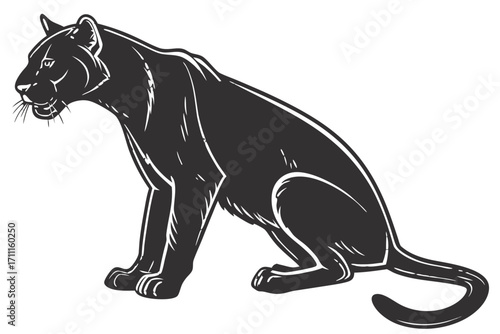 Obraz premium Wild Cat Silhouette – Realistic Vector Illustration, Crouching Pose, Isolated...