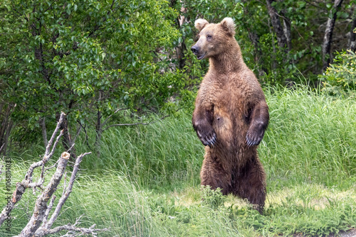 © Patrick, Obraz premium Wild coastal brown bear fishing along the Brooks River in Katmai National Park in Alaska.