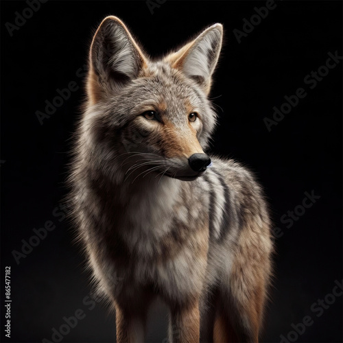 © Claudio Caridi, Fototapeta premium Wild coyote isolated on black background.