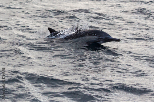 Fototapeta premium Wild dolphins swimming in the waters outside of Santa Cruz Island in Channel...