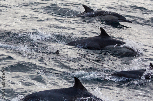 Fototapeta premium Wild dolphins swimming in the waters outside of Santa Cruz Island in Channel...
