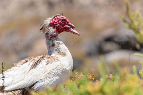 Fototapeta premium Wild duck in Fuerteventura, los molinos, rural town facing the atlantic ocean