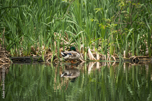 © Ruben, Fototapeta premium Wild duck in the thickets of a city park