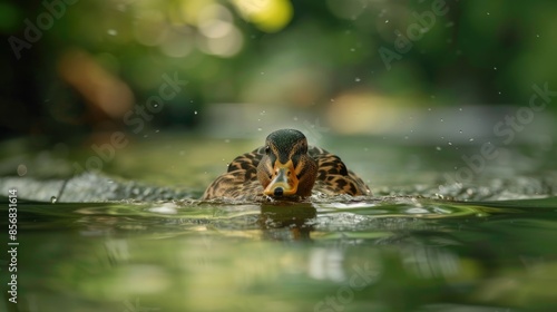 © Emin, Fototapeta premium Wild duck is approaching the camera while swimming