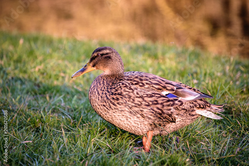 © Lucas Puch, Fototapeta premium Wild duck on the green grass
