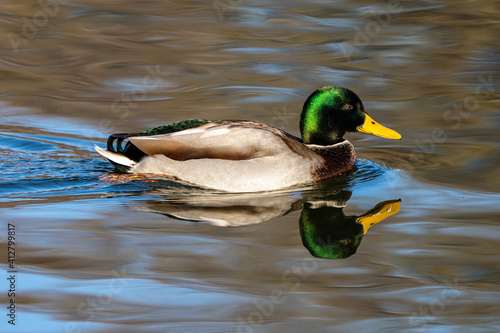 Fototapeta premium Wild duck or mallard, Anas platyrhynchos swimming in a lake