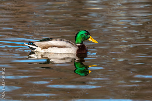 Fototapeta premium Wild duck or mallard, Anas platyrhynchos swimming in a lake