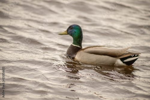 Fototapeta premium wild ducks swim and bathe in the river