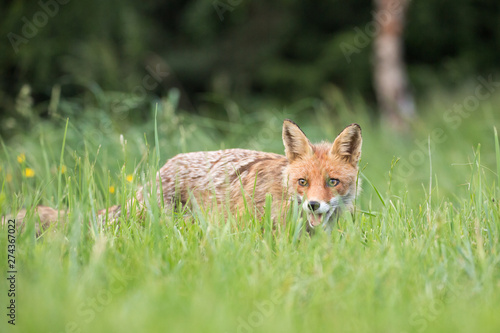 Obraz premium Wild European Red Fox (Vulpes vulpes) amongst the tall grass. Image taken in...