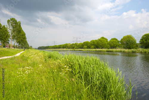 © Naj, Obraz premium Wild flowers along the shore of a canal in spring