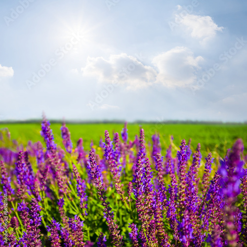 © Yuriy Kulik, Naklejka premium wild flowers among green fields at summer sunny day
