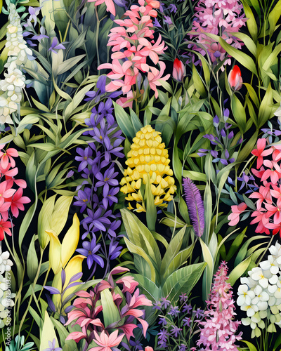 Obraz premium Wild Flowers bloom watercolor seamless pattern