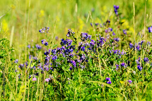 Fototapeta premium Wild flowers in the meadow on a sunny summer day. Natural background.