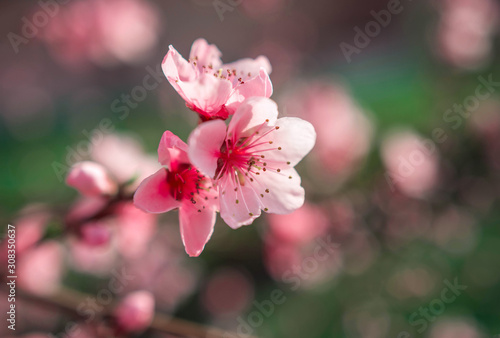 © Lumppini, Fototapeta premium wild flowers sakura bush at suntet.