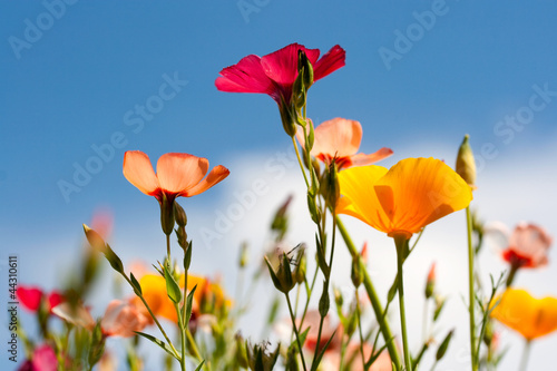 © Pamela Uyttendaele, Fototapeta premium Wild flowers under a blue sky
