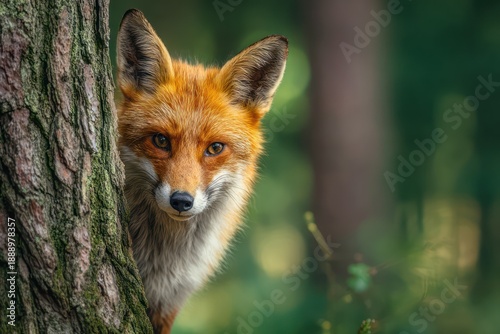 © Igor, Fototapeta premium Wild fox portrait in green woodland