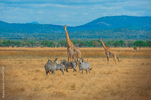 © Kjersti, Naklejka premium Wild Giraffes and zebras together