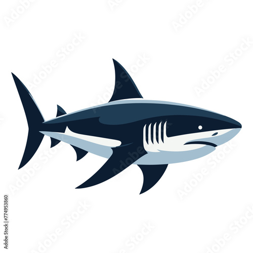 Obraz premium Wild great white shark design illustration, marine predator animal element illustration, swimming angry toothy shark vector template isolated on white background
