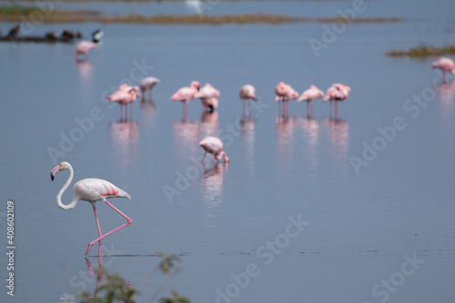 © Miguel, Fototapeta premium wild greater flamingos at lake nakuru