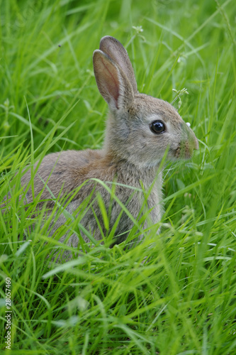 © alina, Fototapeta premium Wild Grey Rabbit in Long Grass
