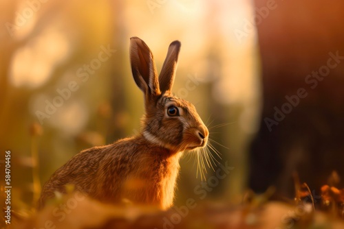 Fototapeta premium Wild hare in the forest. Generative AI.