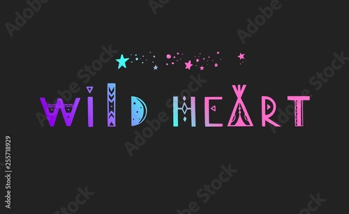 © Wild Muse, Fototapeta premium Wild Heart vector Lettering. Boho inspirational tribal typography concept, poster, tattoo, banner, background